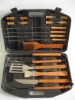 Specifications: 1) Stainless steel 2) Wooden handle 3) Mirror polished 4) Spatula a) Length: 53cm b) Thickness: 1.2mm 5) Tongs a) Length: 46cm b) Thickness: 1.2mm 6) Fork a) Length: 51.5cm b) Thickness: 1.2mm 7) Knife a) Length: 53cm b) Thickness: 1.2mm 8) Brush, 48cm 9) Brass wire brush, 46cm 10) Skewers x 4 a) Length: 50cm b) Thickness: 2.5mm 11) Marker x 8, 6cm 12) Plastic case: 57 x 29 x 8.2cm Inner packing: 1set/black plastic box Box dimensions: 57 x 29 x 8.2cm Outer packing: 6sets/ctn Carton dimensions: 59.5 x 31.5 x 45cm N.W.: 16.5kg G.W.: 17.5kg Conveyance: Qty/20' FCL: 1,992sets Qty/40' FCL: 4,122sets